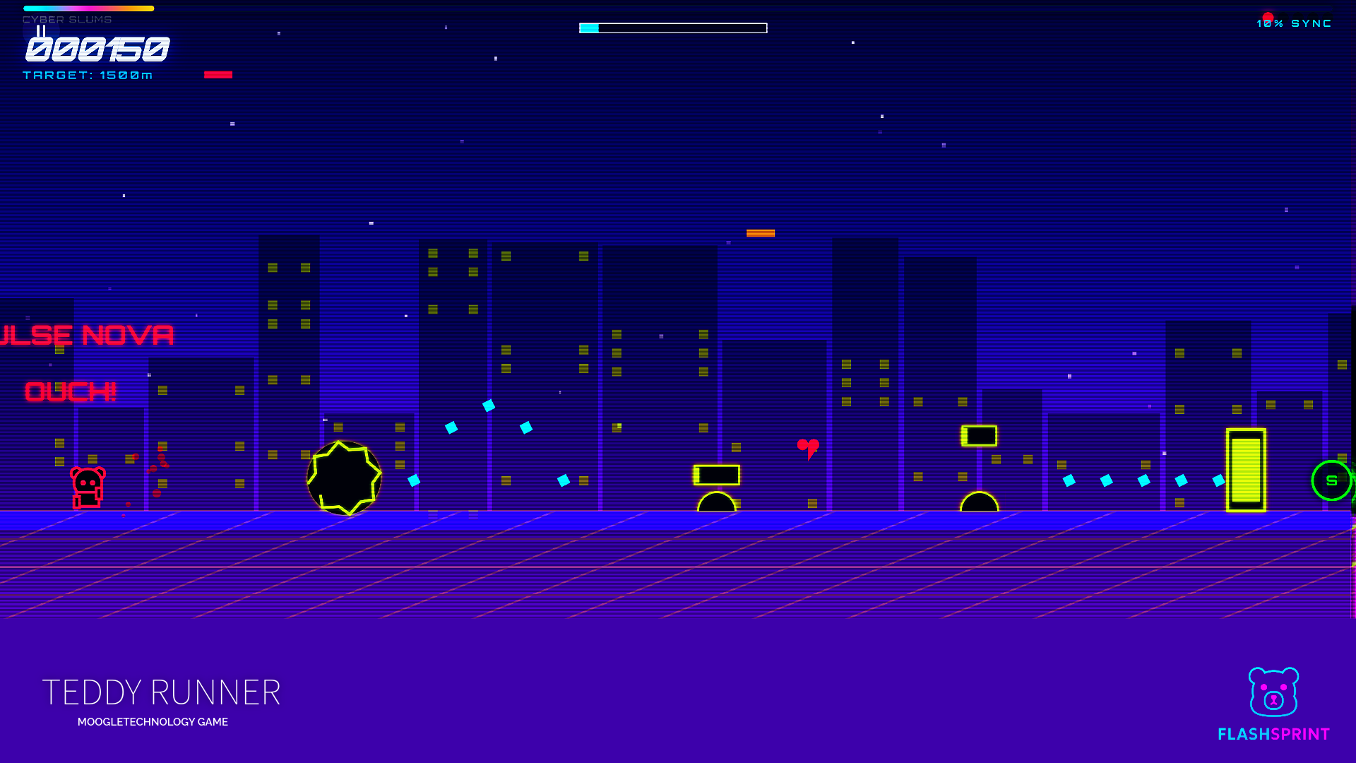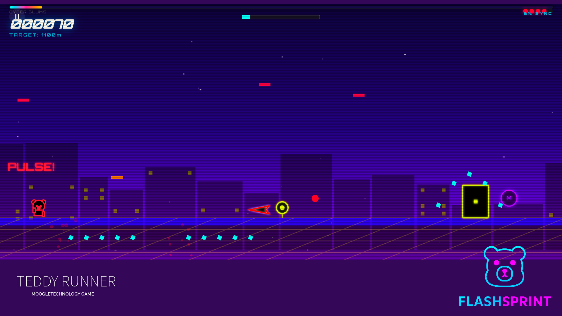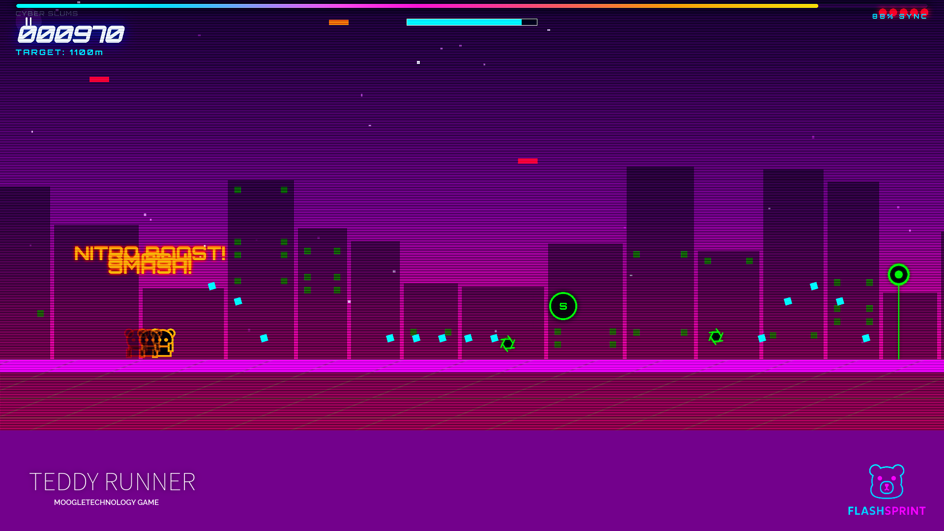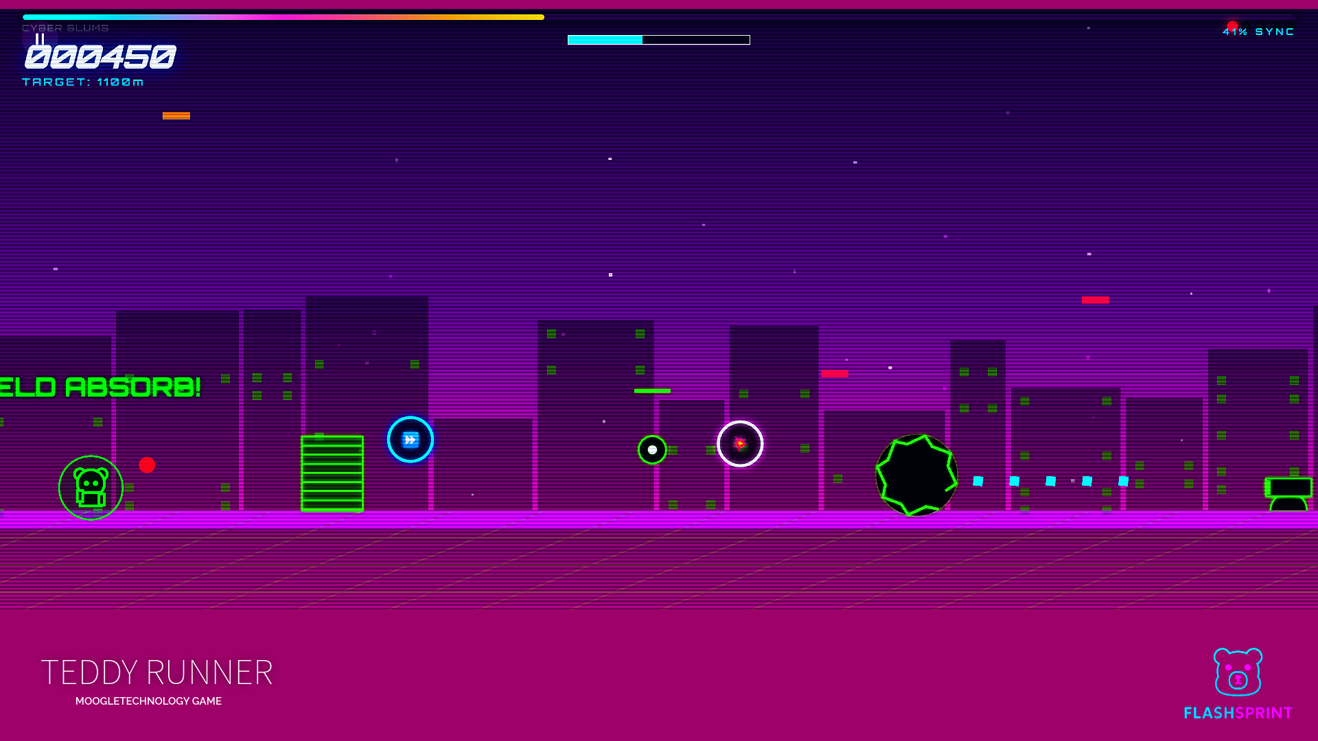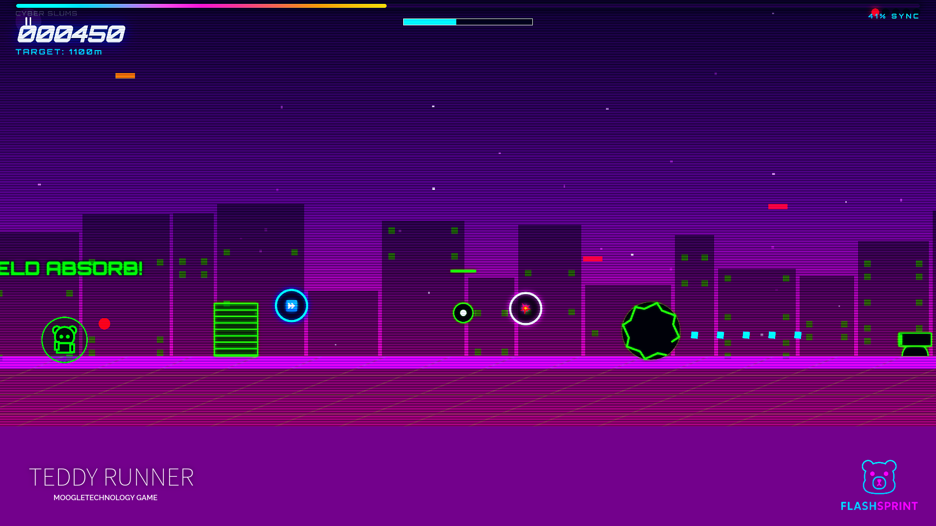 Flash Sprint Dash — Teddy Runner is a fast-paced, cyberpunk-themed arcade runner where players control a cybernetic teddy bear racing through a neon-drenched cityscape at extreme speed.
