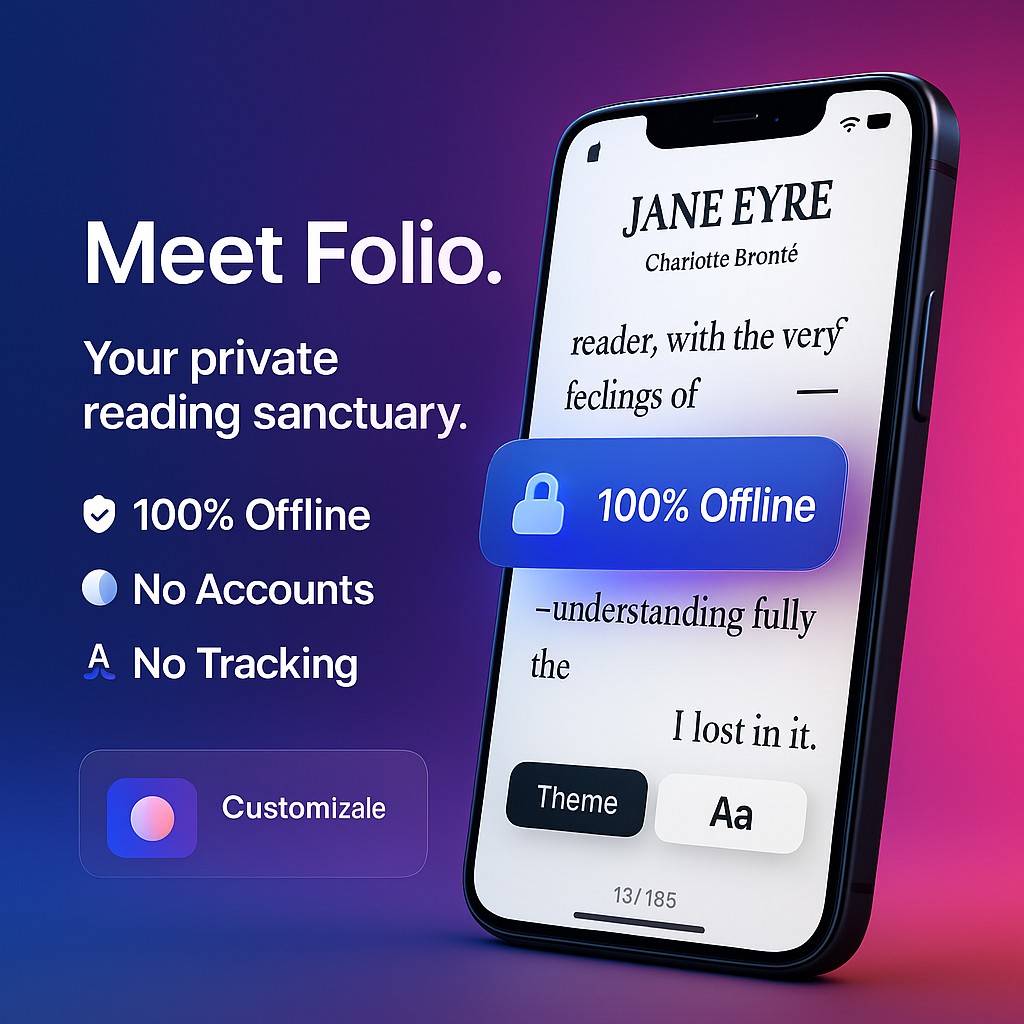 Folio is a modern, offline-first ebook reader and personal library manager designed to give you complete ownership of your reading experience.