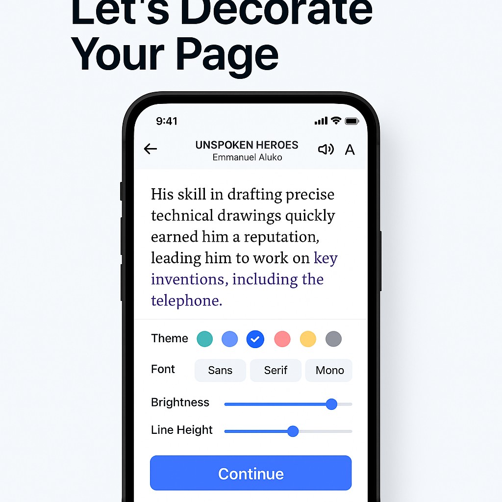 Read Anything: Seamless support for EPUB, PDF, and TXT files.