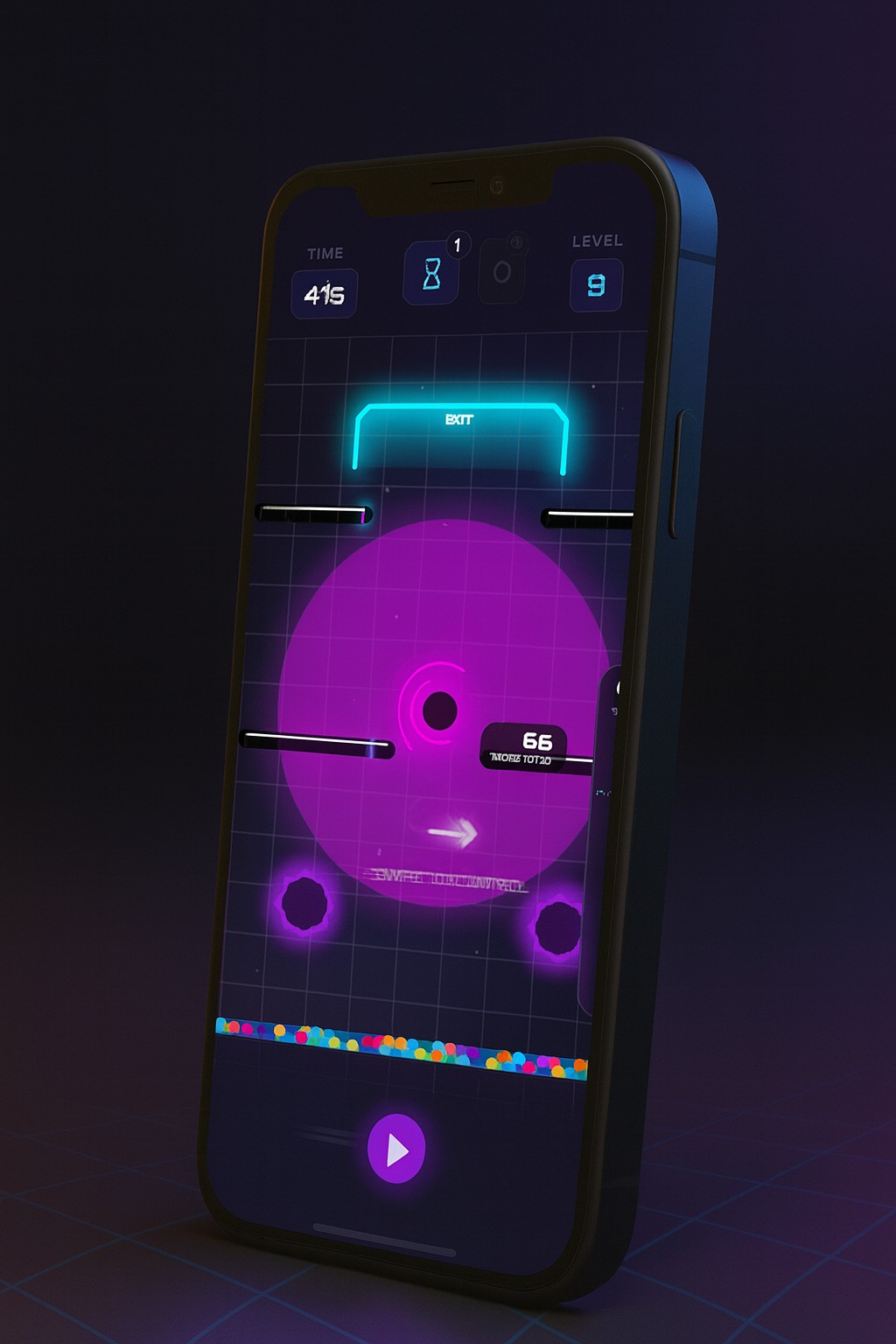 Every level becomes a kinetic puzzle—half logic, half rhythm—designed to induce a focused flow state rather than stress.
