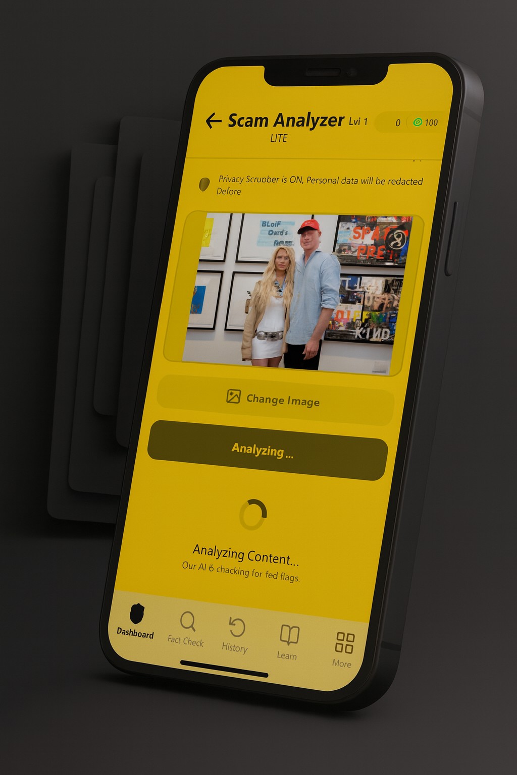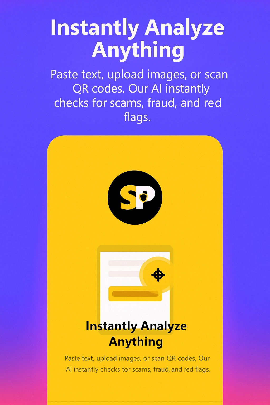 Universal Scam Analyzer: Provides an instant risk score (0–100), summary, and red flag list based on pasted text or uploaded images.
