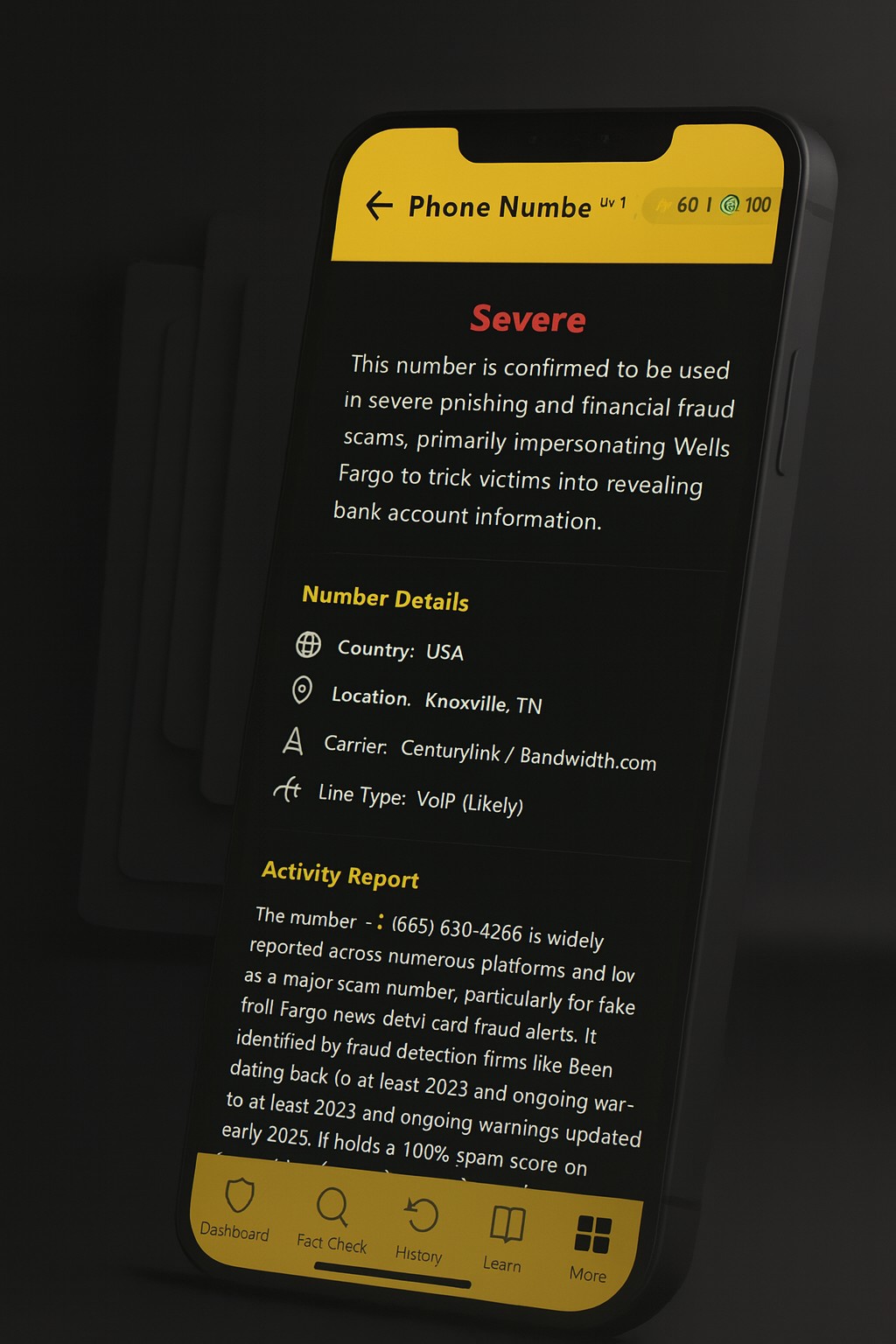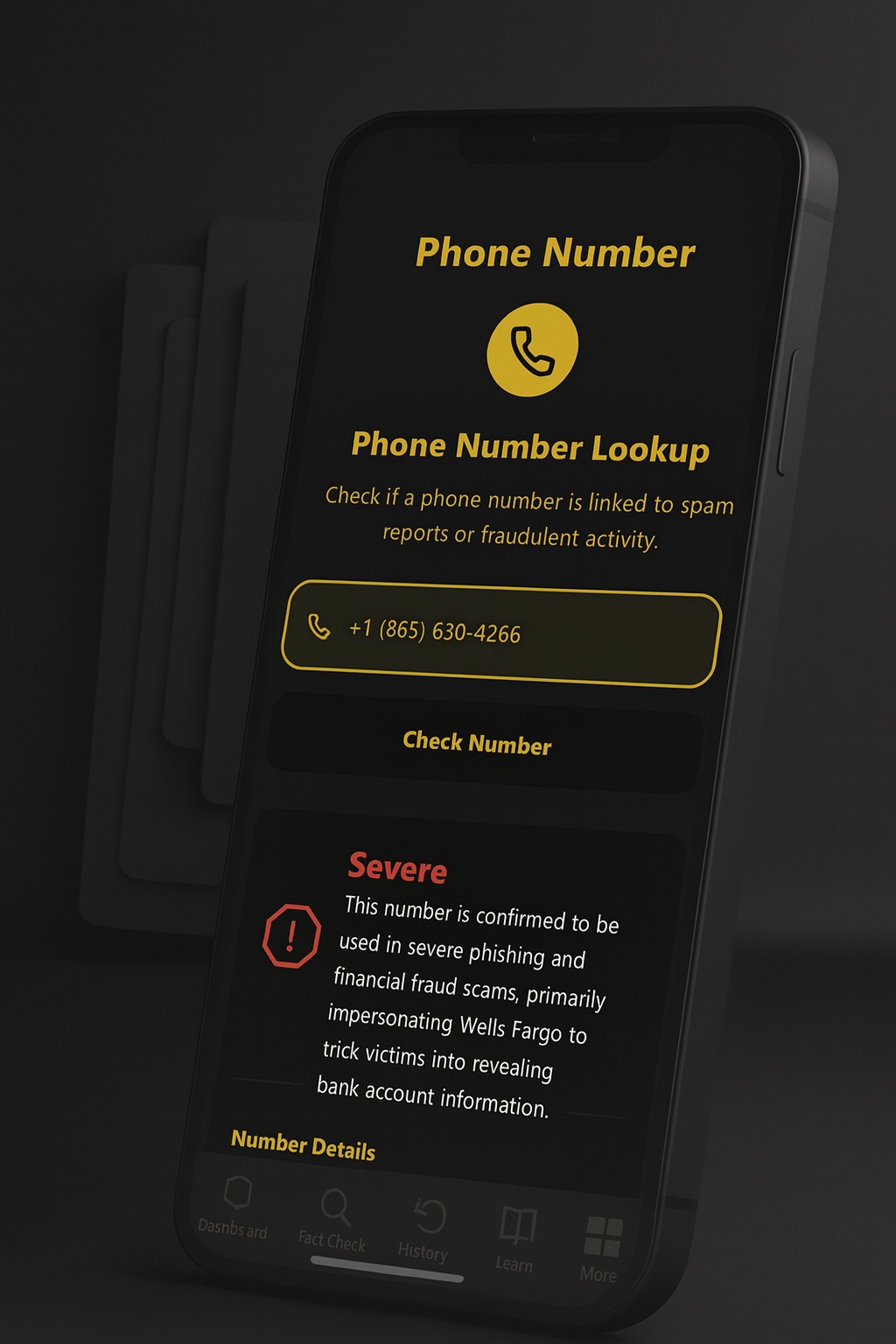 Phone Number Lookup: Provides an intelligence-grade report with origin, carrier, VoIP status, and scam risk level.