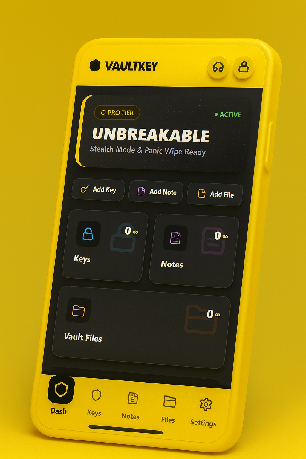 Unlike traditional password managers and vault apps, VaultKey never syncs, never uploads, and never stores recovery keys. All data is encrypted locally on the device using AES-256, with decryption derived in real time from the user’s Master PIN. If the PIN is lost, the data is mathematically unrecoverable—by design.