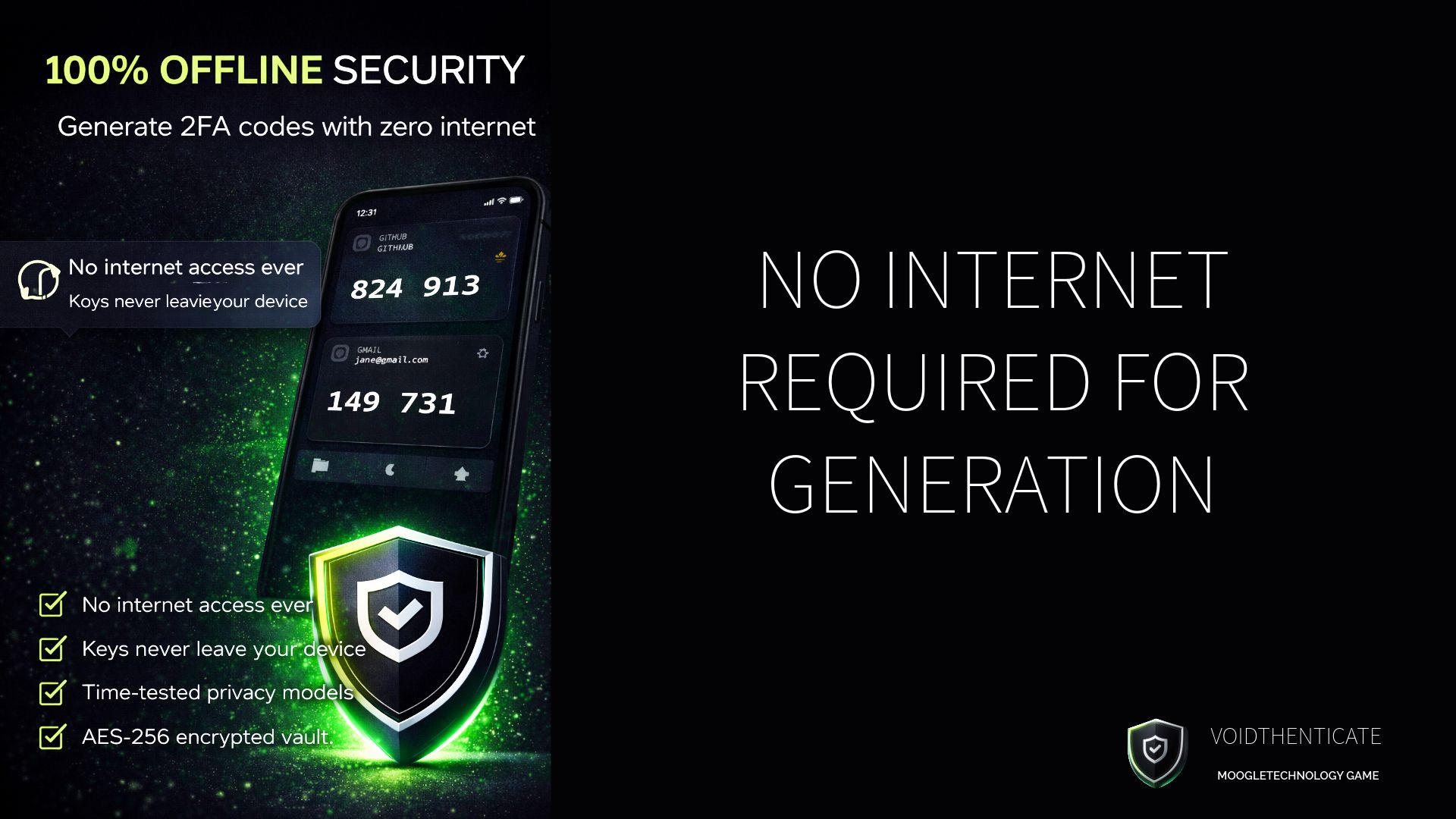Offline removes an entire class of risks—account takeovers, server breaches, and sync-related failures. It doesn’t solve every threat, but it significantly reduces surface area. VOIDTHENTICATE is designed around that principle.