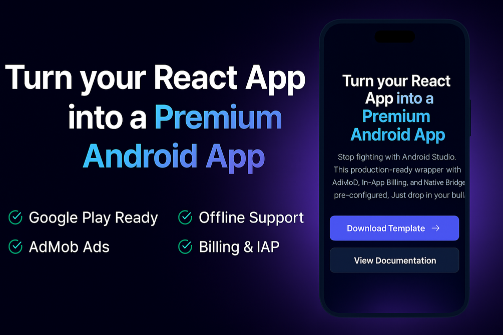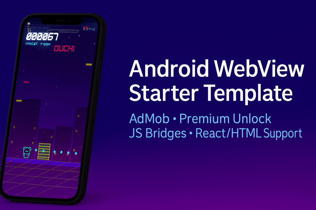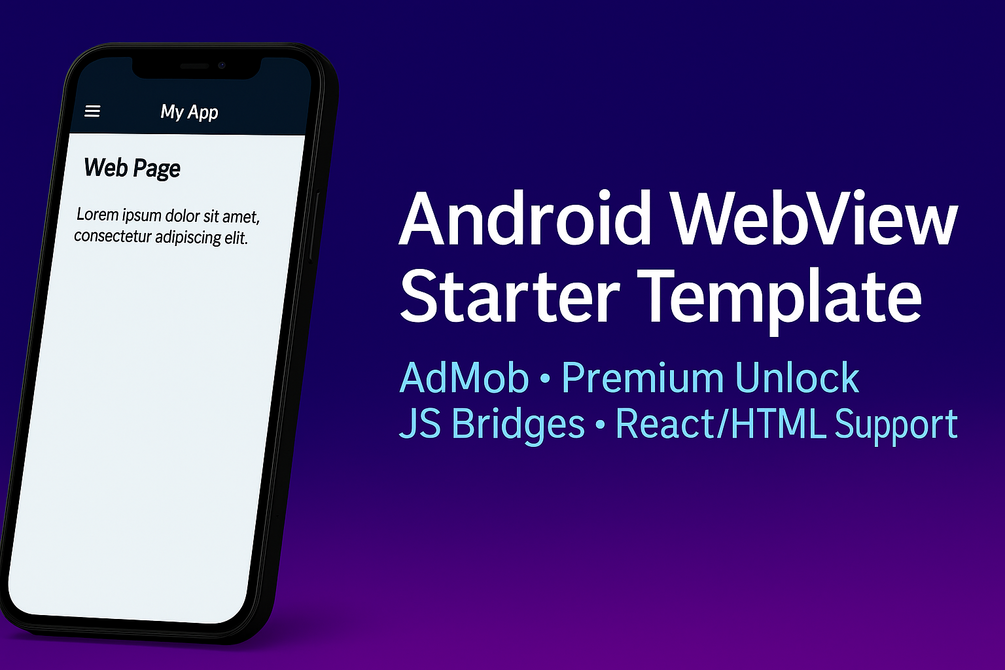 This production-tested WebView Starter Template lets you wrap any HTML5, JavaScript, React, or bundled game into a polished Android app ready for Google Play. Perfect for developers, entrepreneurs, agency owners, or creators launching micro-apps and mobile games quickly.